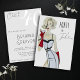 Eine handgemalte Blondine in Aquarellfarbe Button up Modell mit einem formschönen schwarz-weißen Rock und top mit markanten langen, roten Abend Handschuhen mit einem Martini auf einem stilvollen Vintagen inspirierten 40 und Fabulous - 40. Geburtstag Party Einladung in Silber. Diese Einladung ist sexy, elegant und bereit für Sie, um sich anzupassen!