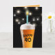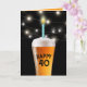 Kerzenlicht in einem Bierglas mit einer hellen Kette auf schwarzem Hintergrund zum 40. Geburtstag. Das Alter kann geändert werden.