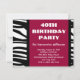 40 avec le rose et noir et blanc Zebra Swirl Invitations personnalisées, idéal pour 40ème anniversaire ou toute année! Customisez cet invitation animal élégant avec vos nom, âge et informations de fête. Magenta rose foncé avec rayures zébrées noir et blanc.