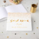 Ein Gästebuch für ein glamouröses 40 & Fabulous, 40. Geburtstag Party. Ein eleganter weißer Hintergrund mit goldenem Konfetti-Sprinkle. Der Text: Das Gästebuch ist mit trendigen Imitaten mit goldenen Buchstaben geschrieben. Der Name wird mit einem handgeschriebenen Stilskript geschrieben. Vorlage für Ihren Text auf der Wirbelsäule.