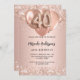 Für einen eleganten 40. Geburtstag. Eine Rose goldener Hintergrund. Mit Rose Gold, rosa Imitat Glitzer, Glitzern und Ballons dekoriert. Personalisieren und fügen Sie einen Namen und Party-Details. Der Name ist mit einem handgeschriebenen Stil Skript geschrieben, Nummer 40 mit ballon Stil Schriftart.