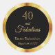 Eleganter, klassischer und einfacher 40-er Geburtstagsaufkleber. Klassische schwarze Hintergrundfarbe mit einem goldenen Rahmen für Imitate. Der Text: 40 und fabelhaft. Vorlagen für ihren Namen und ein Datum. Geburtsdatum oder Geburtsdatum des Party. Goldene Buchstaben. Ideal für Gastgeschenke oder als Save the Date Erinnerung für Ihre Gäste.