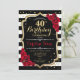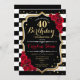 40th Birthday Invitation Elégant design noir blanc rouge avec fausse parties scintillant. Bandes noires et blanches avec roses rouges. Parfait pour une soirée d'anniversaire élégante.