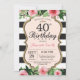 40e anniversaire Invitation pour les femmes. Invitation de fête d'anniversaire noir et or. Parties scintillant or. Aquarelle rose Fleur Florale. Blancs et Noirs. Numérique imprimable. Pour plus de personnalisation, cliquez sur le bouton "Customiser" et utilisez notre outil de conception pour modifier ce modèle.