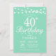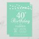 40e Invitation d'anniversaire avec des lampes à cordes. Arrière - plan vert à la menthe. Hommes ou femmes Anniversaire. 13e 15e 16e 18e 20e 21e 30e 40e 50e 60e 70e 80e 90e 100e, n'importe quel âge. Pour plus de personnalisation, cliquez sur le bouton "Customiser" et utilisez notre outil de conception pour modifier ce modèle.
