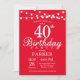 40e anniversaire Invitation avec lumières à cordes. Arrière - plan rouge. 13ème 15ème 16ème 18ème 20ème 21ème 30ème 40ème 50ème 60ème 70ème 80ème 90ème 100ème, Tout âge. Pour plus de personnalisation, cliquez sur le bouton "Customiser" et utilisez notre outil de conception pour modifier ce modèle.