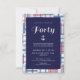 Cette invitation à l'anniversaire, nautique, été, plage, "yacht club" de style petite quarantième anniversaire présente un motif madras rouge, blanc et bleu avec une couverture bleu marine. Le texte "Quarante" est dans un faux style "feuille" argenté avec une ancre en argent assortie. Le texte peut être customisé pour votre occasion spéciale qui précède la célébration d'un 40ème anniversaire.