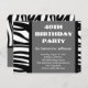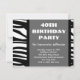 40 avec Zebra Swirl en noir et blanc Invitations personnalisées, idéal pour 40ème anniversaire ou toute année! Customisez cet invitation animal élégant avec vos nom, âge et informations de fête. Gris foncé avec rayures de zèbre noir et blanc.