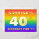 The front of this vibrant fortieth birthday celebration foil invitation card design features an editable name, a large number “40th”, the message “BIRTHDAY PARTY!”, and a border. The background of the front has an eye-catching, colorful, rainbow spectrum inspired gradient pattern. The back features personalized details about the event, such as the date, time, venue/place, and any other important information. Editable invitations like these might be a fun way to invite attendees/guests to a birthday party being held to celebrate somebody’s 40th birthday. [~Z0000599]