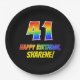 Dieses fröhliche, lustige und farbenfrohe Geburtstags-Thema Papier-Design zeigt eine große Zahl "41" und die Meldung "HAPPY BIRTHDAY", beide mit einem Regenbogenspektrum inspirierte Muster-Färbung, zusammen mit einem kühnen gelben individuelle Name. Der Hintergrund ist schwarz. Geburtstagsthematische Teller wie diese könnten sich bei einem Party, das zum 41. Geburtstag von jemandem abgehalten wird, als nützlich erweisen. [~Z0000488]