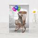 Spielende Tischtenkatze stehend auf einem Holzrocksessel und das Streben nach einem farbenfrohen Ballonpudel zum 41. Geburtstag. Die Altersnummer kann geändert werden.