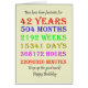 Carte de 42e anniversaire comptant les années, jours, mois, heures et minutes. Une carte pour réfléchir ! Les années bissextiles ont été prises en compte !