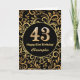 43e Anniversaire Carte d'Anniversaire Florale Noir et Or. Pour plus de personnalisation, cliquez sur le bouton "Customiser" et utilisez notre outil de conception pour modifier ce modèle.