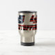 15 oz de tasse de voyage argent emblazée avec 45 48 avec arrière - plan du drapeau américain. Voyagez avec l'assurance que vos amis conservateurs et étrangers sauront où vous êtes.