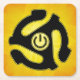 45 U-/minPower-Aufzeichnungs-Adapter. Eine Silhouette eines 45 U-/minadapters mit einem Powersymbol in der Mitte (Symbol Iecs 5009). Schwärzen Sie mit gelber Kontur über einem gelben und orange Hintergrund. Power oben mit einigen klassischen Vintagen Platten!