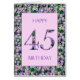 Carte d'anniversaire 45e pour une femme qui aime les fleurs. Une carte d'anniversaire élégante avec un arrière - plan de fleurs marguerites violettes. C'est la carte parfaite pour une fille qui aime n'importe quoi floral ou violet!