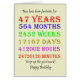 47. Geburtstagskarte, die die Jahre, Tage, Monate, Stunden und Minuten hinunter zählt. Eine Karte, die zum Nachdenken anhält! Es wurden die Leap-Jahre berücksichtigt!