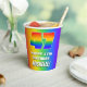 This joyful and exciting birthday themed paper cup design features a large number “47” with a colorful rainbow spectrum inspired gradient pattern, along with the message “HAPPY 47th BIRTHDAY,”, and a customizable name. The background also features a cheerful multicolored rainbow spectrum inspired gradient pattern. Birthday themed paper cups like this might be a fun way to celebrate somebody’s 47th birthday. [~Z0000576]