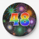 Dieses fröhliche, lustige und farbenfrohe Papier-Plattendesign zeichnet sich durch eine große Zahl "48" mit einem inspirierten Regenbogenspektrum aus. Es zeichnet sich auch durch ein lebendiges und aufregendes Feuerwerk inspiriert. Der Hintergrund ist schwarz. Teller wie diese können bei Jemanden zum achtundvierzigsten Geburtstag, einem 48. Jubiläum-Party oder einem anderen 48. [~Z0000490]