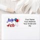 Feiern Sie den Amerikanischen Unabhängigkeitstag mit diesem Label am 4. Juli in 3D-Blau und Rot-Text und Rot, Weiß und Blau-Ballons. Passen Sie dies mit Ihrer eigenen Adresse an. Drei Etikettengrößen zur Auswahl.
