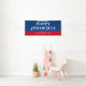 Einfaches und modernes Party-Banner mit individuellem Text in Rot und Blau.