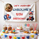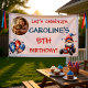 Machen Sie Ihre Party mit diesem personalisierten Foto-Banner zum Knallen. Mit einem süßen patriotischen Gnom und Sternen ist es der perfekte Hintergrund für den 4. Juli-Geburtstag. Robust und leicht zu personalisieren mit dem Bild und Namen Ihres Kindes