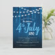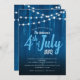 Die Party Einladung vom 4. Juli präsentiert sich in einer rustikalen, dunkelblauen Holzkulisse mit Lichterketten. Das ist perfekt für Ihr Amerikanische Unabhängigkeitstag Party im Familienhof.