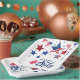 Diese helle Papiertafel bietet ein lustiges Independence Day Design dekorativer roter, weißer und blauer Sterne in einem anmutigen Bogen über wunderschöner Kalligraphie, die "Happy 4. Juli" lautet. Ideal für die Schwanz-Gate-Party und Barbecues, wenn Sie den Anlass feiern. Durchsuchen Sie ID1103 um alle koordinierenden Produkte mit diesem fröhlichen Design zu sehen.