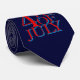 Dieses Textdesign ist rot und blau. "4. Juli" ist in gedruckter Form erledigt. Dieses Design wurde um einen blauen Hintergrund erweitert. Diese Krawatte kann getragen werden, um die Ferien zu feiern.