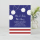 Das ist eine lustige Rot, Weiß und Blau 4. Juli Hochzeitseinladung mit Streifen, Lichtern und Laternen. Scrollen Sie nach unten, um die Erholung der Sammlung zu sehen.