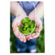 Ein kleines Mädchen hält eine Handvoll vierblättriger Kleeblatt für den St. Patrick's Day. Text kann geändert oder gelöscht werden.