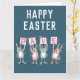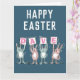 Osterkarte für jemanden mit 4 Buchstaben. Osterkarte mit Darstellung der Kaninchen in Rosa und Blau. Die Kaninchen halten Karten auf, um den Namen zu benennen.