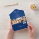 Chic blue white elegant classic call in one calligraphy wedding invitation with rsvp, accommodations, details, and more info. With a modern and trendy script, add 4 of your photos.