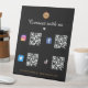 Mit diesem coolen Podestschild mit 4 QR-Codes, benutzerdefinierten Firmenlogos und Text erhalten Sie mehr Anhänger. Fügen Sie einfach Ihre Daten hinzu, indem Sie auf "Personalisieren" klicken.