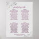 Dieses schöne 4-Tisch Hochzeitsstühle Diagramm beinhaltet Tischbelegungen für 40 Gäste, mit 10 Personen an jedem Tisch. Das Design ist einfach und dennoch elegant mit magenta oder cassis lila Texten auf einem hellgrauen Hintergrund und mit silberfarbenen Imitaten mit floralen Filigree in den Ecken und einem extravaganten Script-Kalligraphientitel mit dem Titel "Finden Sie Ihren Tisch". Raffiniert und elegant.