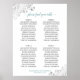 Ce beau tableau de sièges mariage de 4 tables comprend des assignations de table pour 40 personnes, avec 10 personnes à chaque table. Le design est simple mais élégant avec du texte gris et turquoise ou turquoise sur un arrière - plan blanc et présente un fil floral en dentelle dans les coins et un titre de calligraphie de script sophistiqué "s'il vous plaît trouver votre table." Sophistiqué et chic.