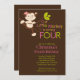 Commencez votre quatrième fête d'anniversaire outre de la droite avec nos invitations adorables de partie d'anniversaire de enfant de singe de petite fille. Perfectionnez l'invitation pour vous la 4ème célébration de fête d'anniversaire ! Nos petites invitations douces de singe comporte un singe mignon de petite fille balançant sur une branche d'arbre et est placées sur un arrière - plan brun élégant. Notre invitation de fête d'anniversaire de fille de singe comporte un petit singe unique avec un casquette de partie et monte en ballon l'arrière - plan. Visitez notre magasin pour assortir vous remercient des cartes de note, autocollants d'anniversaire, merci des autocollants et des timbres-poste. © petit Tatti