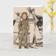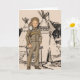 Direkt aus den 50er Jahren. Kleiner Junge in seinem Daniel Boone Outfit mit "Coon-skin" Kappe. Im Hintergrund ist eine braune Illustration der indischen Tepees. Inside sagt "Happy Birthday" in anpassbarem Text.