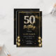 50. Geburtstagseinladung von Diamond Black und Gold,