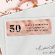 Utilisez ces étiquettes d'adresse de retour pour envoyer vos invitations à 50 et fabuleuses fêtes d'anniversaire. Avec du texte noir et blanc et un arrière - plan de feuille d'or rose métallique.