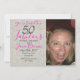 Une invitation colorée et moderne à 50e anniversaire qui peut être personnalisée pour vous 50e anniversaire célébrations. La photo peut être remplacée par une photo de votre choix. Le texte rose et noir peut être modifié selon les informations dont vous avez besoin pour vous donner les invités. Une motif moderne et colorée dans les tons violet et rose orne le dos de la carte.