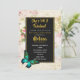 Eine 50 & fabelhafte Geburtstagsfeier. Entworfen mit einem eleganten grünen Schmetterling. Ein schwarzer Rahmen mit einem goldenen Rahmen überlagert ein Vintages Collage-Muster mit farbigen rosa Rosen und grünen goldenen Blätter mit einem schillernden, altmodischen Look.