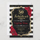 50 Fabulous Birthday - Rose Schwarz-weiße Streifen Einladung