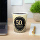 Eine elegante Papiertasse aus dem 50. Jubiläum mit schicker Gold- und Schwarz-Optik.