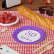 Diese 50. Geburtstagsparty-Teller bieten Imitate lila Glitzer. Weitere passende Artikel sind ebenfalls verfügbar.