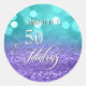 50 & Fabulous Script Sparkling Aquamarin Lila Ombr Runder Aufkleber