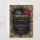 Einladung zum 50. Geburtstag. Elegantes Schwarz-weißes Design mit Imitate Glitzer Gold. Verfügt über Rote Lippen Kuss, Leopardendruck, Konfetti und Script-Schriftart. Ideal für eine elegante Geburtstagsfeier. 50 Fabelhaft! Nachricht, wenn Sie weitere Anpassungen benötigen.
