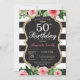 50. Geburtstag Einladung für Frauen. Black and Gold Geburtstagsparty Einladung. Gold Glitzer. Rosa Aquarell Floral Blume. Schwarze und weiße Streifen. Tafel. Printable Digital.