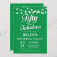 50. Geburtstag Einladung mit String Lights Green Hintergrund. Geburtstagsparty der Frau. 50 und fabelhaft. Jedes Alter.