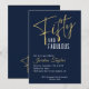 50. Geburtstag Elegant Script Navy und Gold Einladung